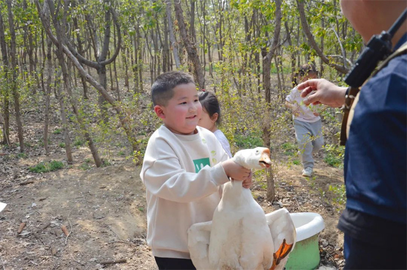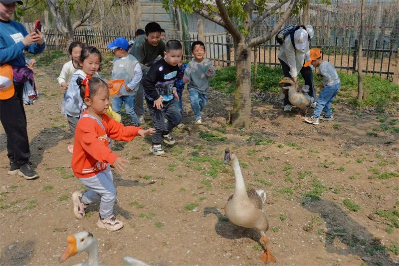 看呐!家长和孩子们正在和大鹅,小羊进行一场追逐大赛,孩子们如同脱缰的野马,一冲而上,农场里你追我赶,欢乐极了。在此刻,不论年龄,都在难得的自然田园里,回归纯真,尽情撒欢。