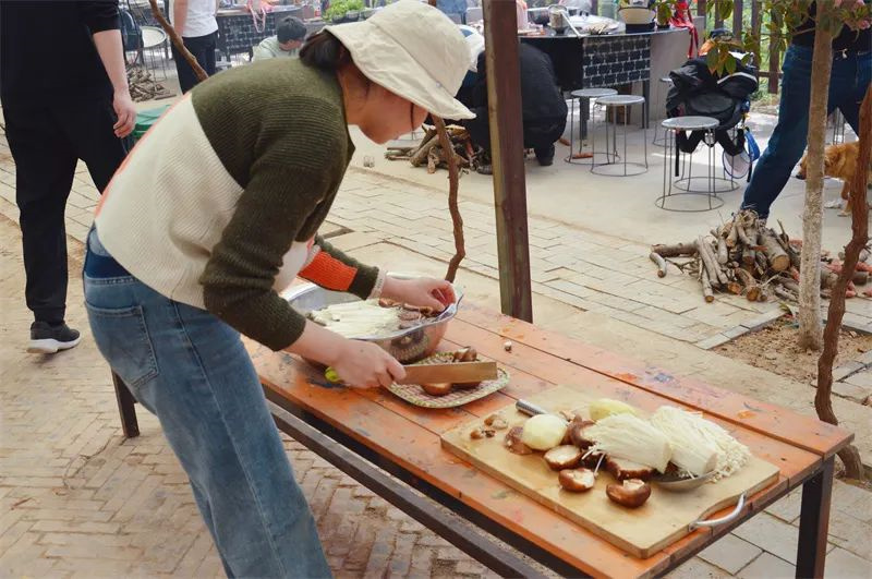 今天的亲子厨房真是烟火气十足,爸爸妈妈们正卷起衣袖,大显身手:生火、炒菜,动作娴熟;大家各司其职,不一会儿便炊烟四起、香气扑鼻了。快来尝一尝这美味的铁锅炖吧!