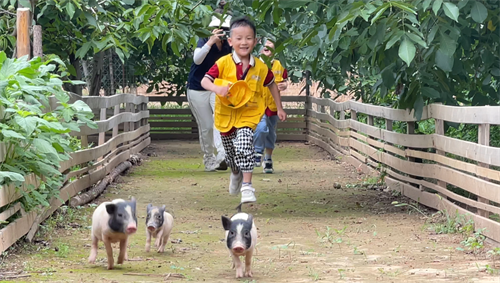 在幼儿园里有户外游戏“赶小猪”,今天在户外课堂小朋友们体验了一次真正的“赶小猪”,大家追着小猪开心的奔跑着,玩的不亦乐乎。