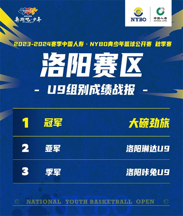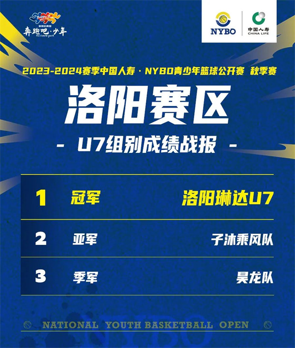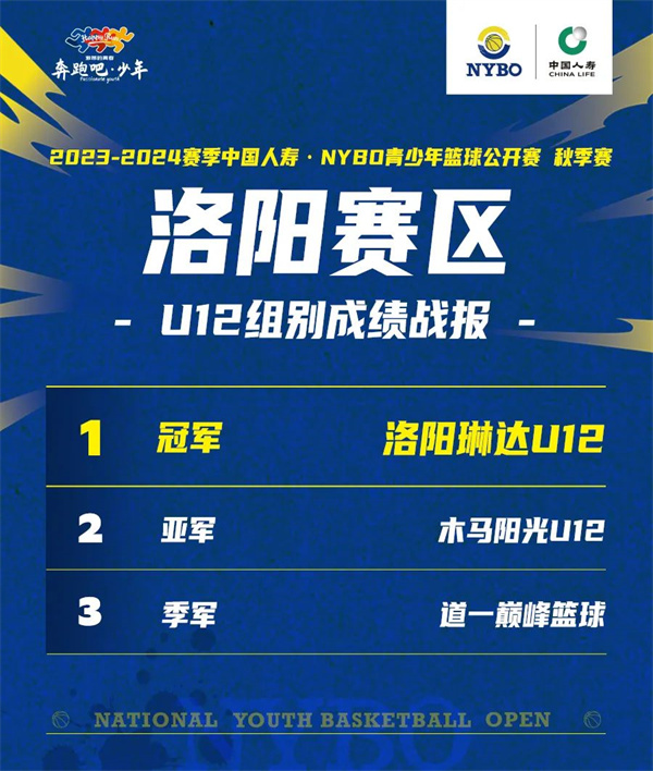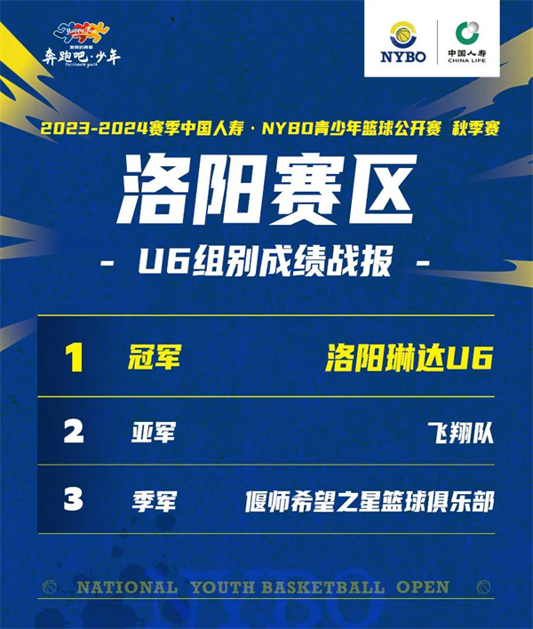 9月30日,2023-2024赛季中国人寿·NYBO青少年篮球公开赛秋季赛(洛阳赛区)在琳达宝贝运动俱乐部建设路馆火热举行。本次比赛有来自U6-U12七个组别36支队伍,320名球员参赛,历时3天92场比赛,孩子们秉承坚持、奋斗、尊重、友爱的精神,以出色的表现完美诠释了拼搏与坚持的意义,让在场的观众深深感受到了篮球运动的魅力。